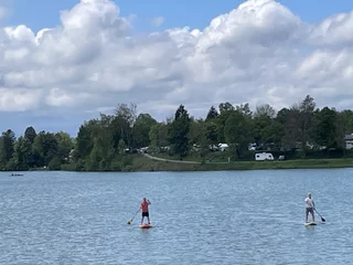 Lechbruck ist mit 2850 Einwohnern relativ klein, verfügt aber über eine hervorragende Infrastruktur mit 3 Supermärkten, Bäcker, Metzger, Apotheke, Buchladen, verschiedenen Restaurants und ein sehr gutes original italienisches Eiscafé. Für Golfer ist die Anlage Gschwend“ in unmittelbarer Nähe ein Leckerbissen.. Dort befindet sich auch ein Restaurant mit traumhaften Blick ins Alpenvorland. Am Ort befinden sich zwei Kinderspielplätze. Der Lechsee ist auch im Sommer eher frisch und eher zum StandIUp-Paddeln oder Bootfahren als zum Schwimmen geeignet. Es gibt traumhafte, warme Badeseen in der Umgebung, die per Fahrrad oder Auto gut zu erreichen sind. Die nächsten Hallenbäder sind die Kristalltherme bei Füssen, das Hallenbad in Nesselwang oder Schongau.